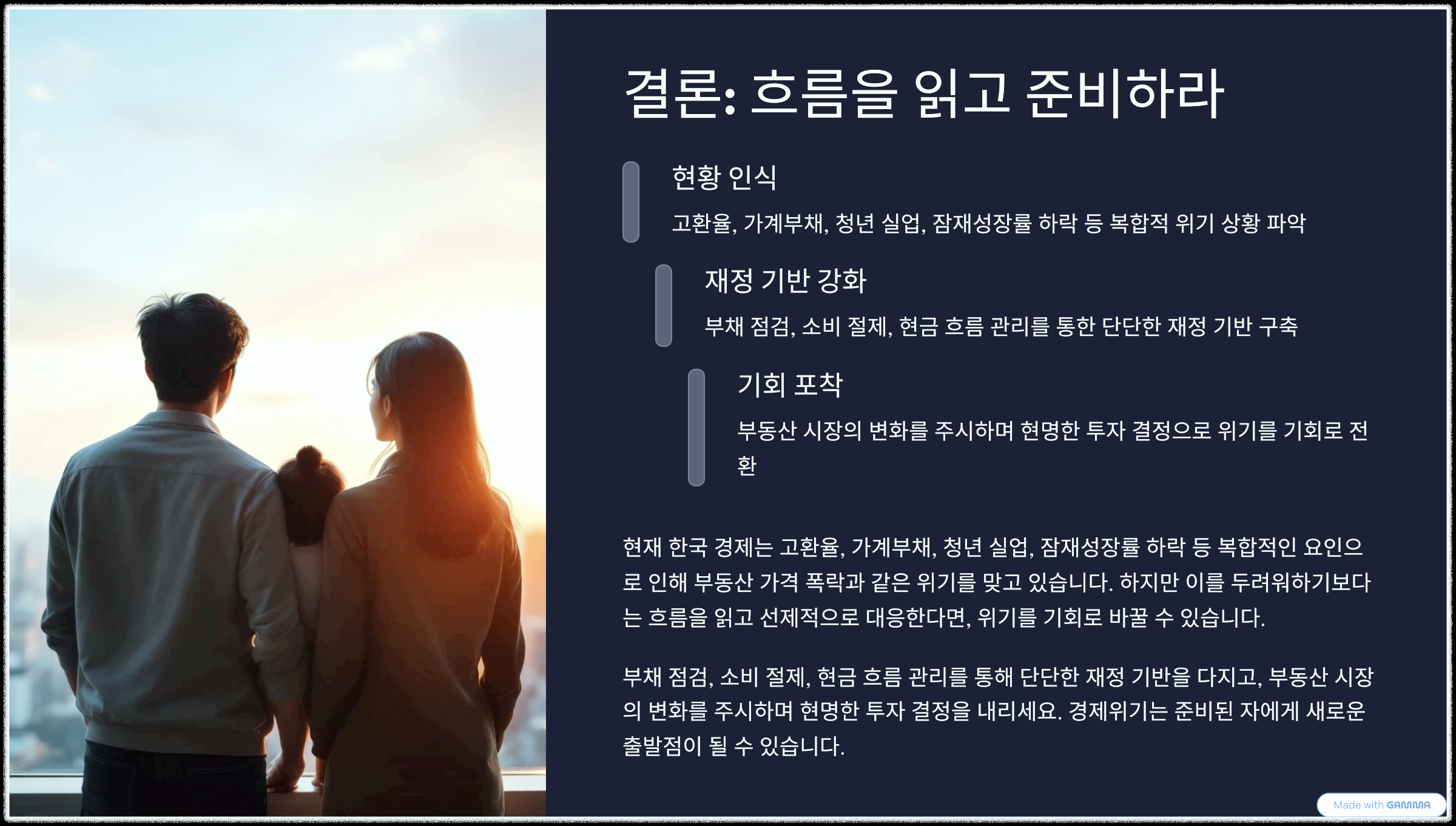 | 부채 구조 | 1인당 평균 1억 9,000만 원 수준의 빚 부담 |